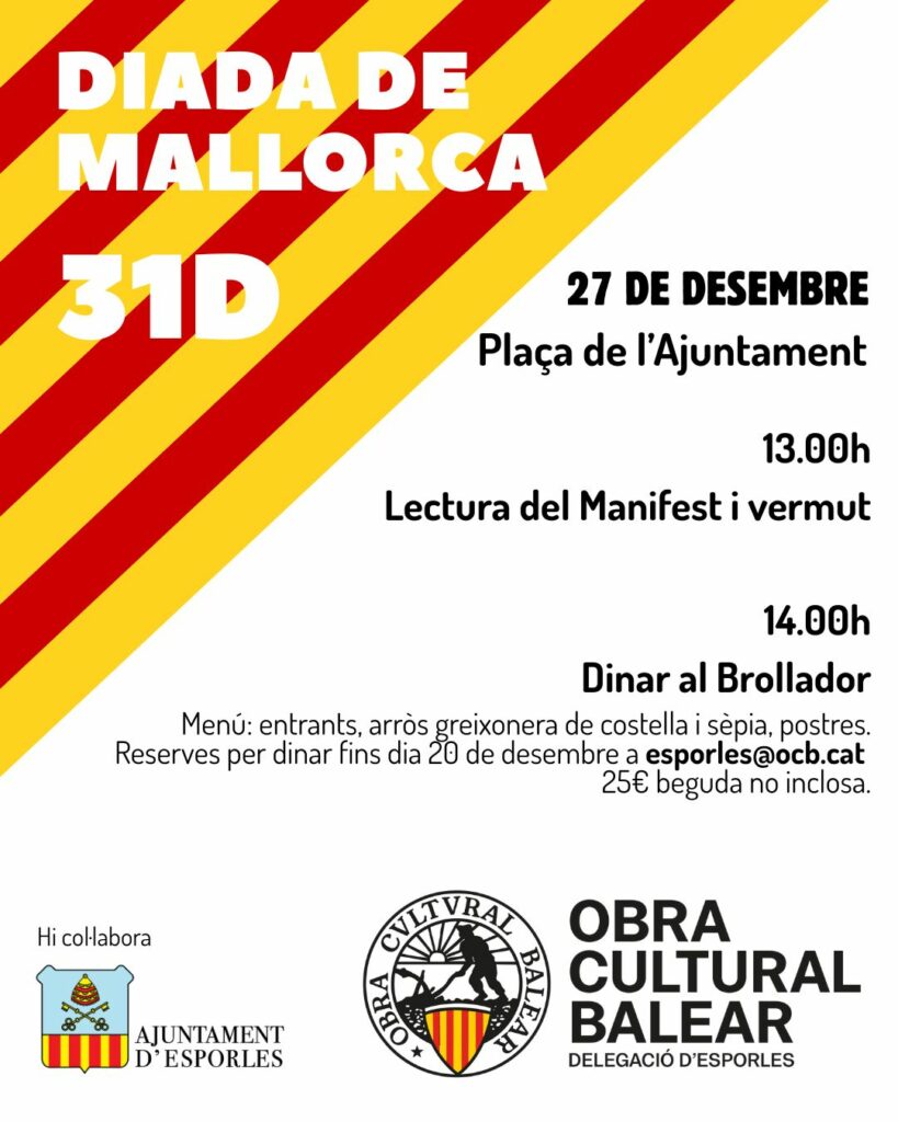 Reserva per dinar fins dia 20 de desembre a esporles@ocb.cat.