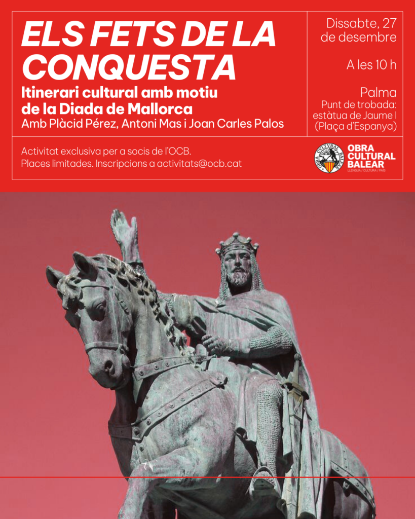 🏰 Celebra la Diada de Mallorca recorrent la nostra història pels carrers de Palma amb l’itinerari cultural “Els fets de la conquesta”. Un recorregut organitzat per l’OCB amb motiu de la Diada de Mallorca exclusiu per als seus socis.