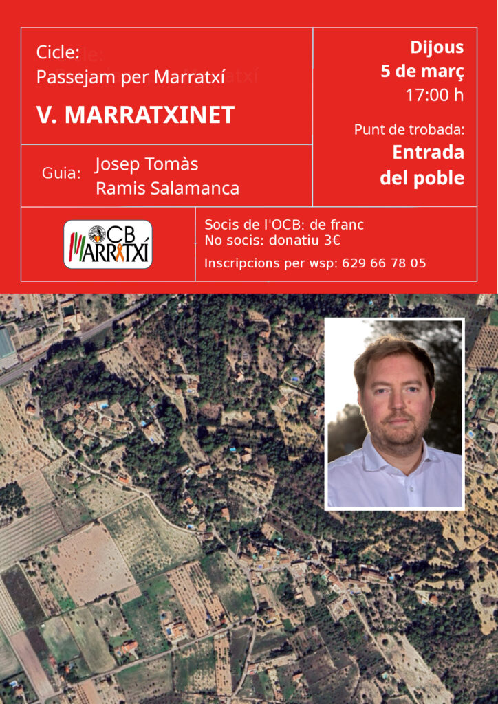 Josep Tomàs Ramis Salamanca ens guiarà pels carrerons i la història del nucli fundacional del terme de Marratxí. És imprescindible la inscripció per wsp al 629667805.