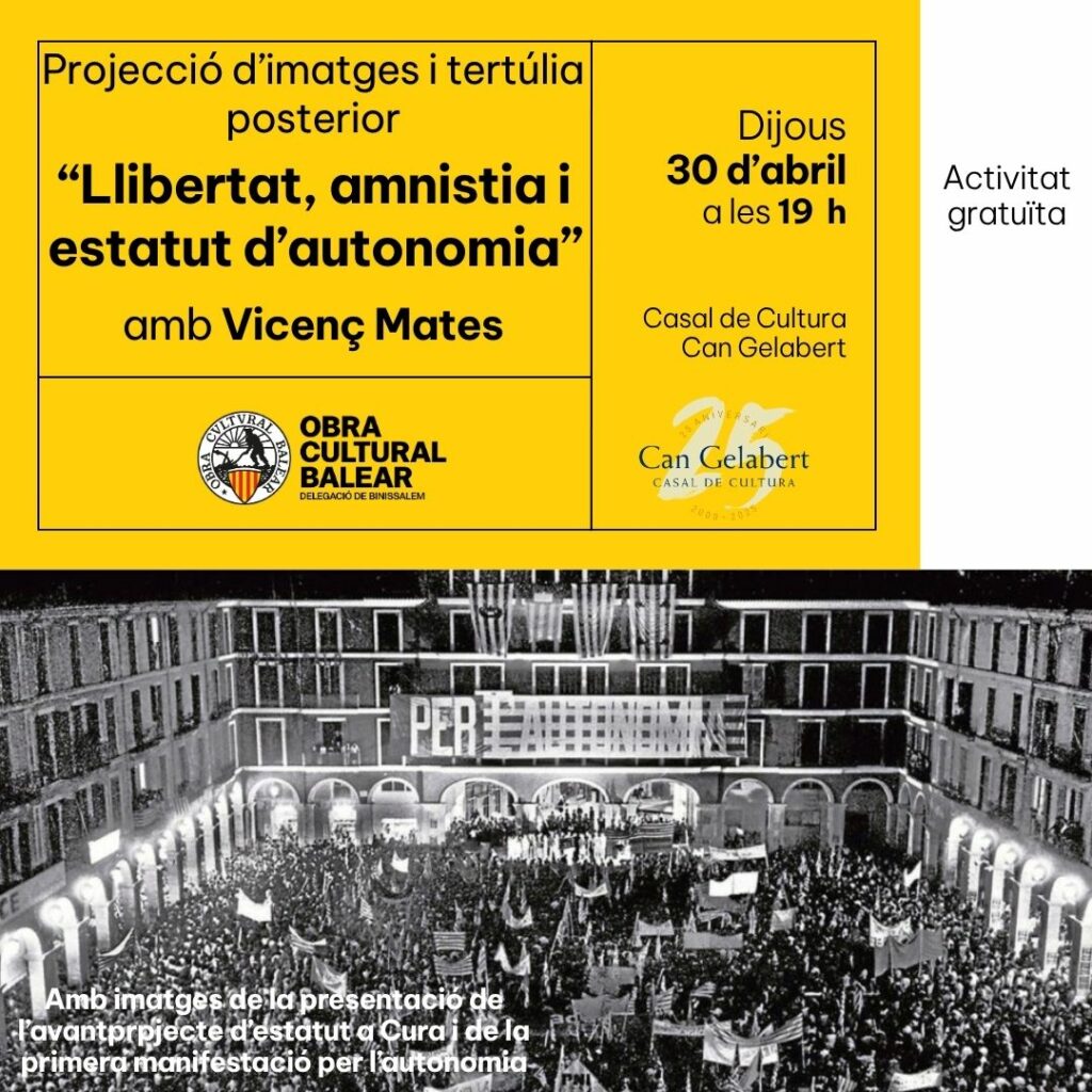 Projecció d’imatges i tertúlia posterior “Llibertat, amnistia i estatut d’autonomia” amb Vicenç Mates