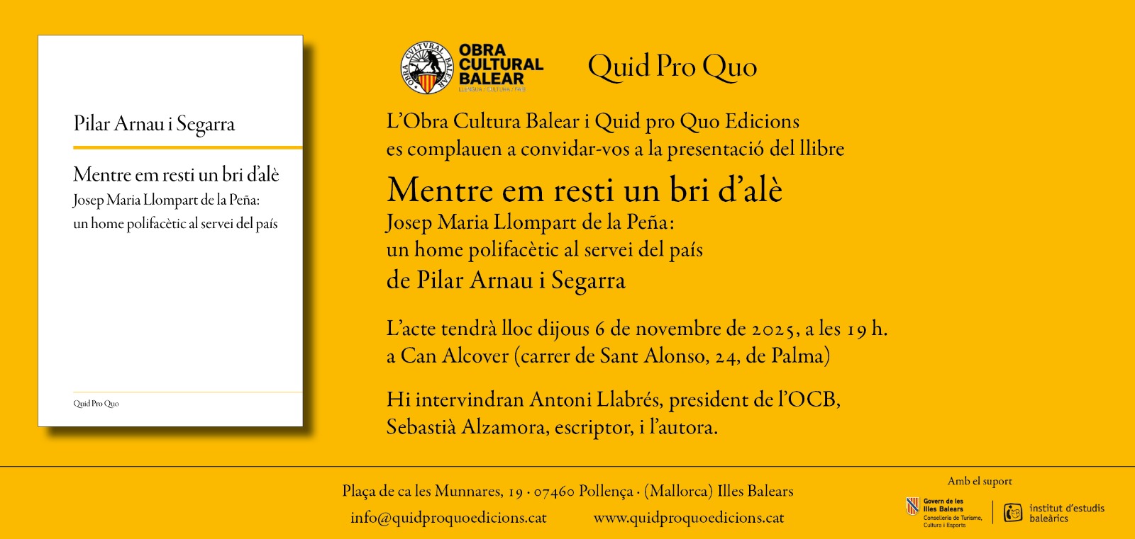 Inca – Seu de l’OCB Inca (Carrer de Son Odre, 3) En el marc del projecte Tots Plegats, impulsat per l’Obra Cultural Balear, amb el suport de l’IEB, s’ofereix una sessió formativa d’acompanyament lingüístic adreçada a totes les persones voluntàries que vulguin participar en el foment de l’ús social del català. Aquesta formació té […] |
