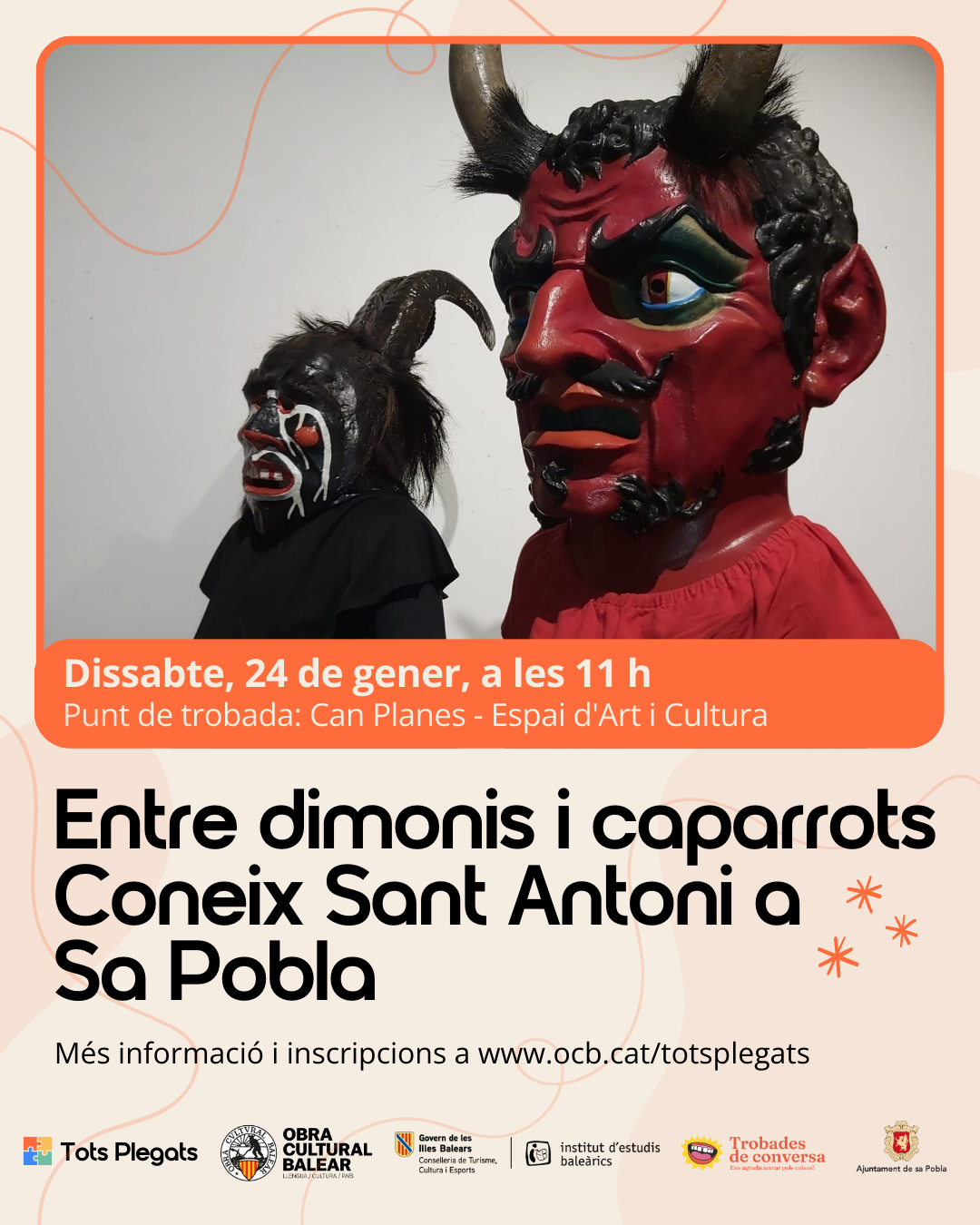 Tots Plegats Si vols conèixer com és la celebració de Sant Antoni a Sa Pobla i, alhora, practicar el català d’una manera divertida i entretinguda, vine a l’activitat “Entre dimonis i caparrots. Coneix Sant Antoni a Sa Pobla”! Serà el dissabte, 24 de gener, i ens trobarem a les 11 hores a Can Planes. Es […]