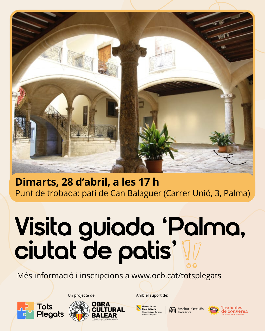 Palma – Punt de trobada: pati de Can Balaguer Aquesta és una activitat del Tots Plegats. Per a més informació consultau la pàgina web www.ocb.cat/totsplegats |
