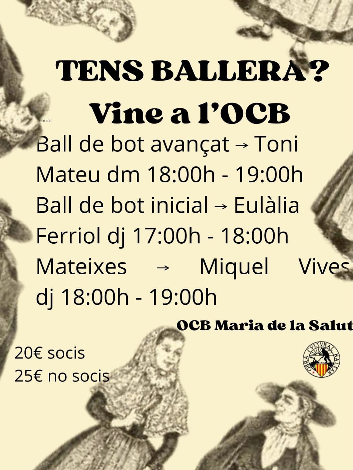 ![]() Maria de la Salut – Local OCB Divendres de 16.30 h a 19 h. Dies 24 i 31 d’octubre i 7, 14, 21 i 28 de novembre. Elaboració de construccions. Exposició d’un betlem conjunt. Inscripció: maria@ocb.cat / 610 400604. Aportació: 50€ no socis / 40€ socis (material inclòs). |